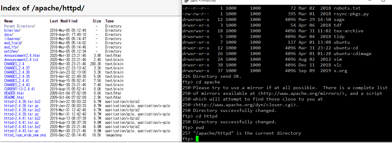 파일 접근하여 가져오기(httpd-2.4.43.tar.gz)