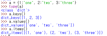 - a = {1:"one", 2:"two", 3:"three"}