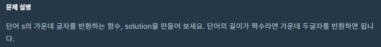 2. 짝수인 경우 가운데 글자 두개를 가져온다
