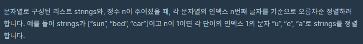 strings[i][n]를 strings[i].at(n)으로 하면 실패를 했다.