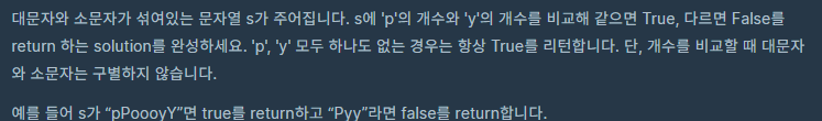 문자 사이의 p와 y의 개수를 확인하여 리턴