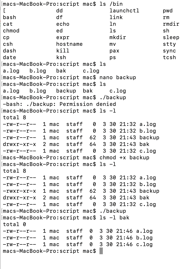 - 작성하고있는 backup파일을 실행했을 때 처음 값을 보고 아래 작성되는 코드들이 /bin/bash 아래에 있는 명령어로 해석한다