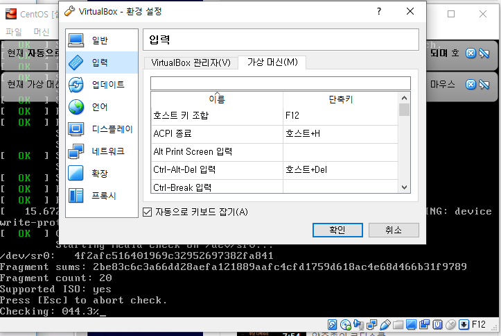 - 파일-환경설정-입력-가상머신- 호스트 키조합(F12 클릭)