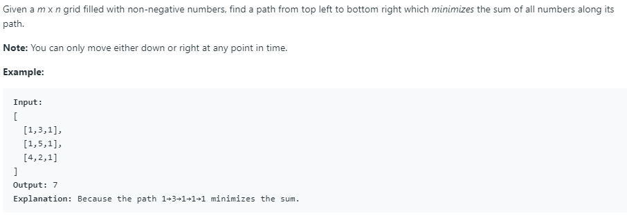 vec[i][j] = min(vec[i - 1][j] , vec[i][j - 1]) + grid[i][j];