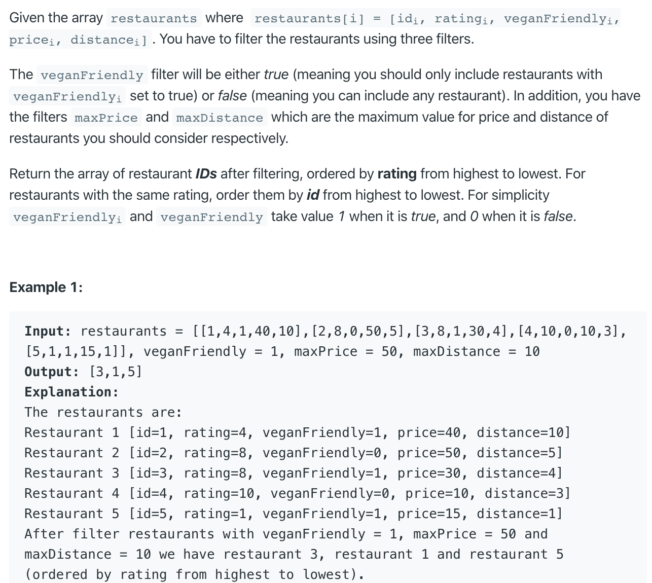 https://leetcode.com/problems/filter-restaurants-by-vegan-friendly-price-and-distance/