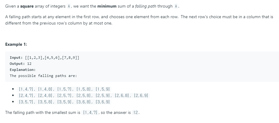 https://leetcode.com/problems/minimum-falling-path-sum/