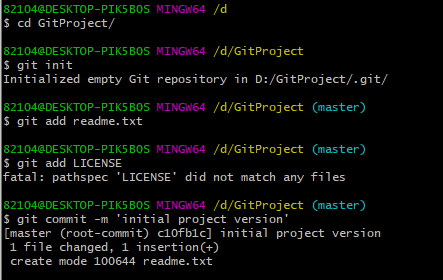 readme.txt는 not staged(unstaged) 상태로 나온다.