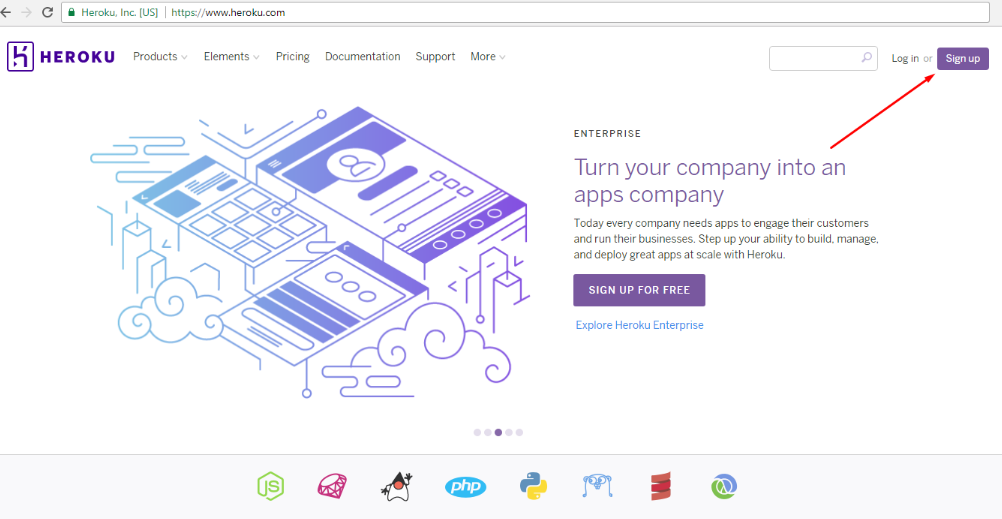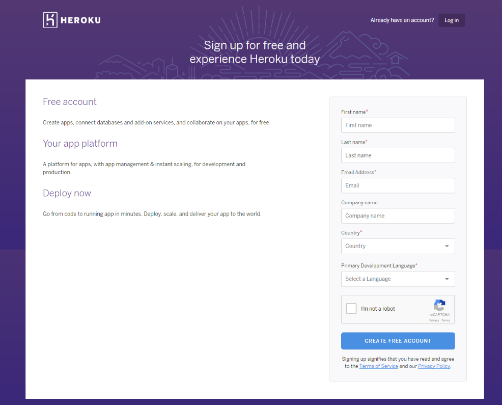 https://www.heroku.com 로 이동하여 Sign up 클릭