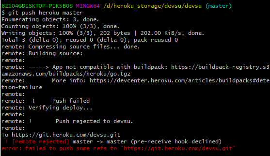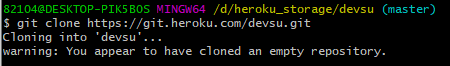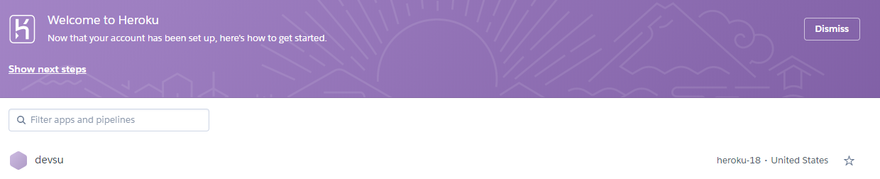 heroku에서 대쉬보드를 눌러보면 devsu라는 저장소가 만들어졌다.