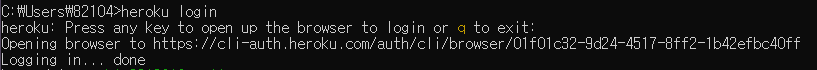 이후에는 git 사용하여 heroku 명령어 사용하였다.