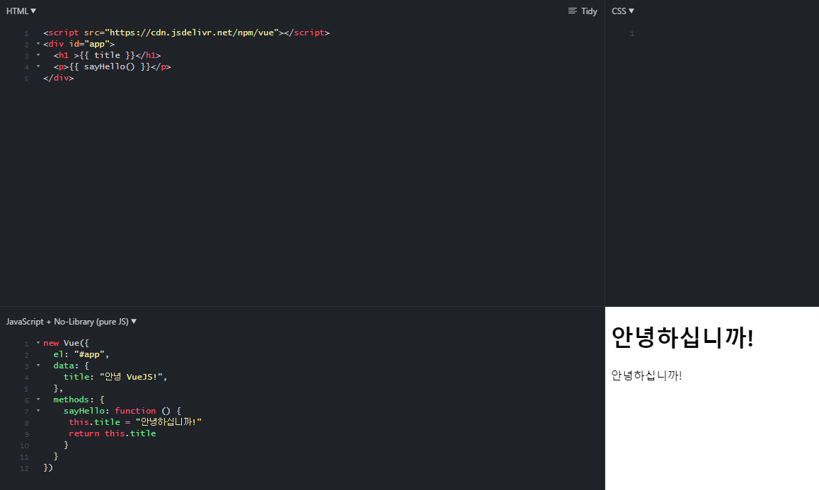 | VueJS - 5. HTML 코드를 직접 template에 넣어주는 v-html / VueJS Directive (0) | 2020.07.09 |