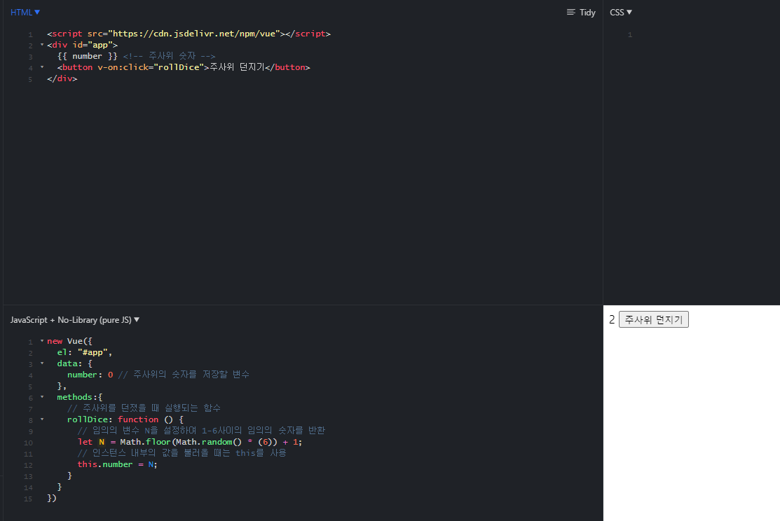 <button v-on:click="rollDice">주사위 던지기</button>