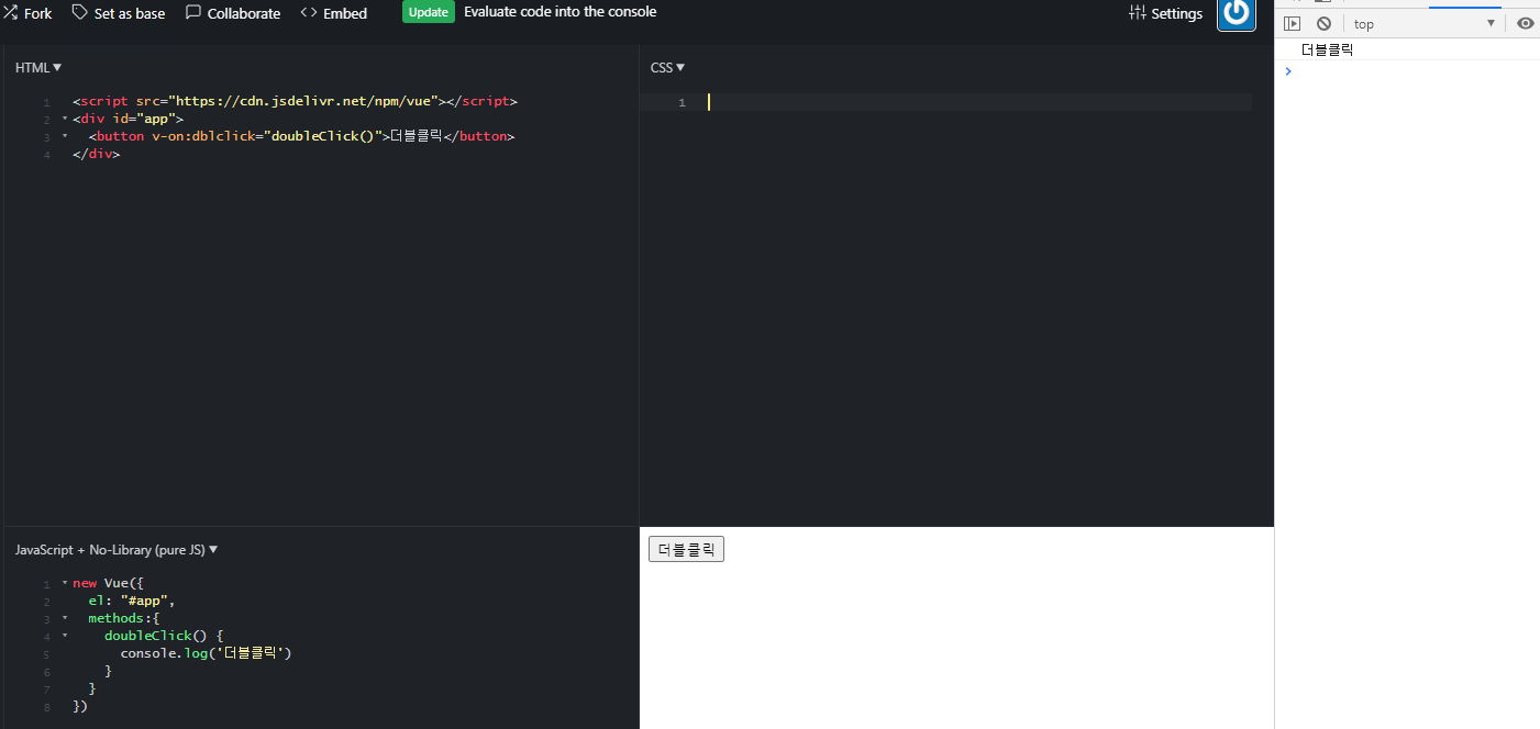 더블 클릭을 하면 콘솔에 출력하기