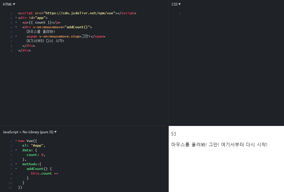 <span v-on:mousemove.stop="">그만!</span>